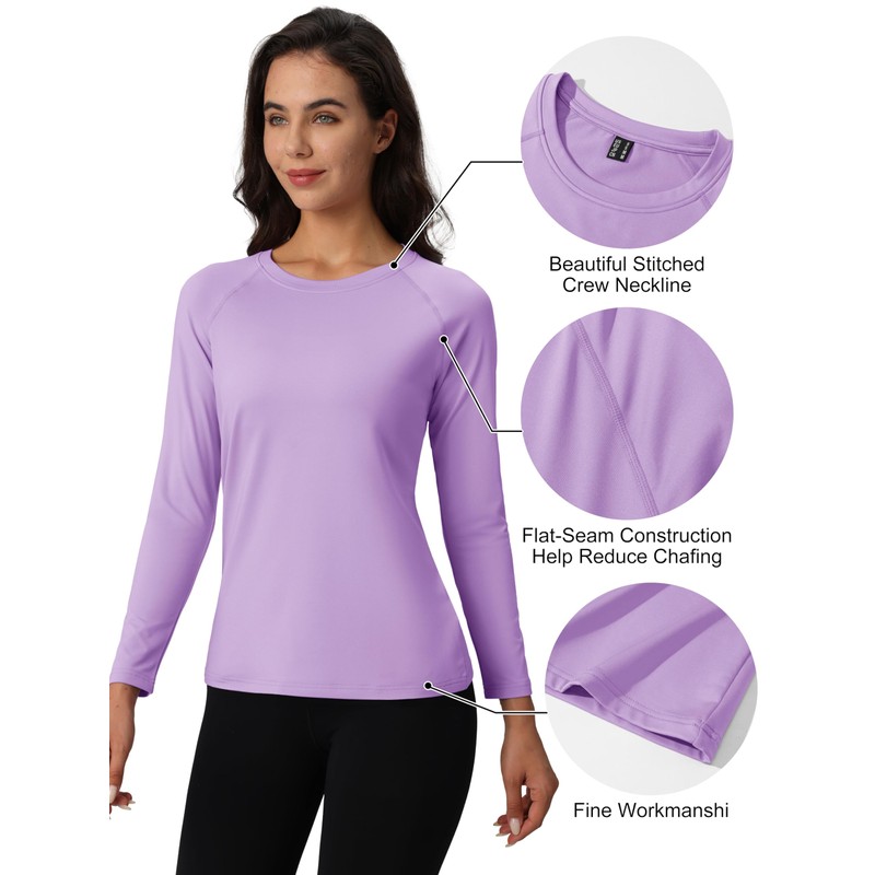 MAGCOMSEN Womens Undershirts Fleece Tops Long Sleeve Workout Shirts Athletic Running Thermal Base Layer Warm Purple L