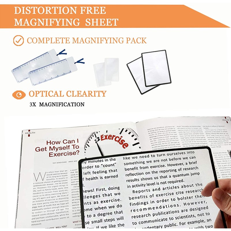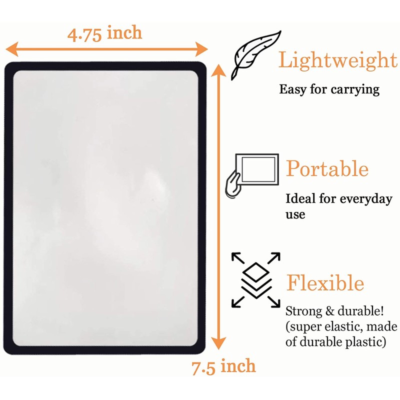 - DURABLE & MOBILE: Our magnifying glass is a flexible plastic sheet which acts like a large magnifying glass.Lightweight, easy for carrying.Ultra-thin can be easily put into bag and bring it wherever you go.