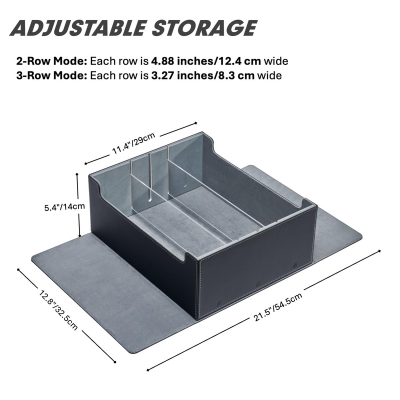 - [Spacious Interior with Adjustable Dividers] Featuring a roomy interior with adjustable acrylic dividers, allowing you to customize the storage space to accommodate different deck boxes, card sleeves, or toploaders.
