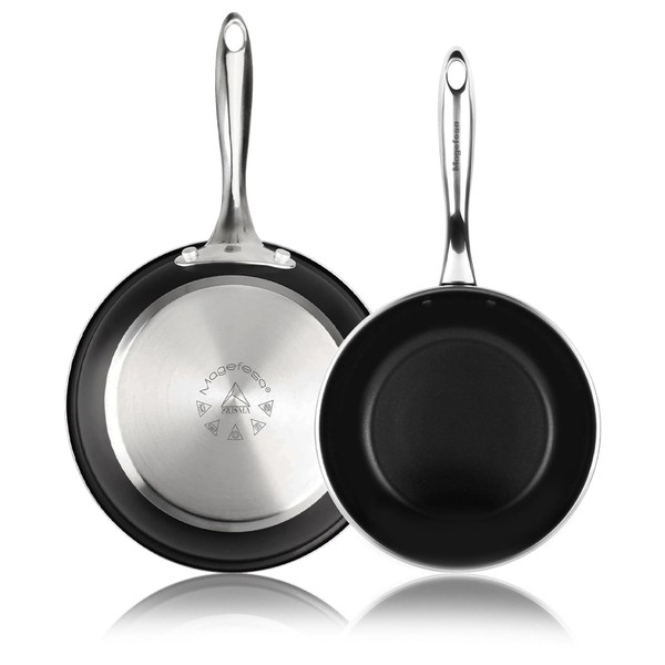 MAGEFESA Prisma Frying Pan Set, 7.8" & 9.4", 18/10 Stainless Steel, Triple-Layer Nonstick, Works on All Stovetops Including Induction, Oven Safe to 392°F, Dishwasher Safe, Durable Cooking Skillets