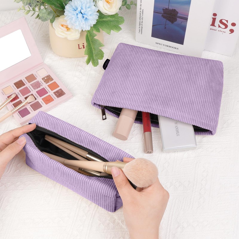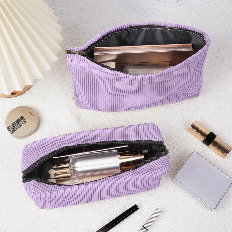 MAGEFY 2 pcs Bolsa de Cosméticos de Pana Estética Bolsa de Maquillaje Cosmetiquera para Maquillaje Neceser Mujer Portátil Cosméticos para Viajar Bolsas de Mujer (Púrpura)