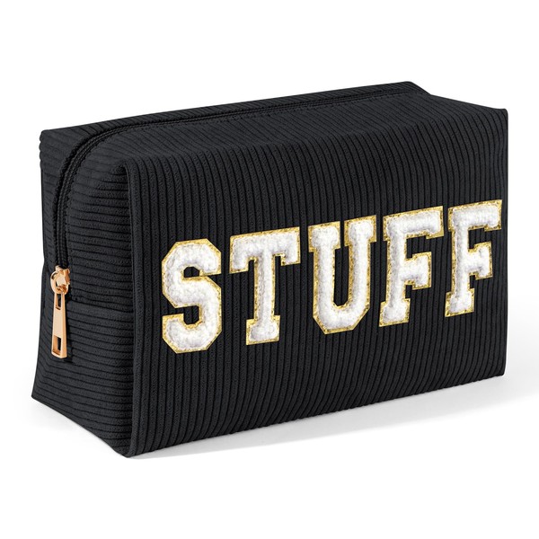 MAGEFY Small Makeup Bag for Purse Corduroy Makeup Bag for Women Makeup Pouch with Compartments (Black, STUFF)