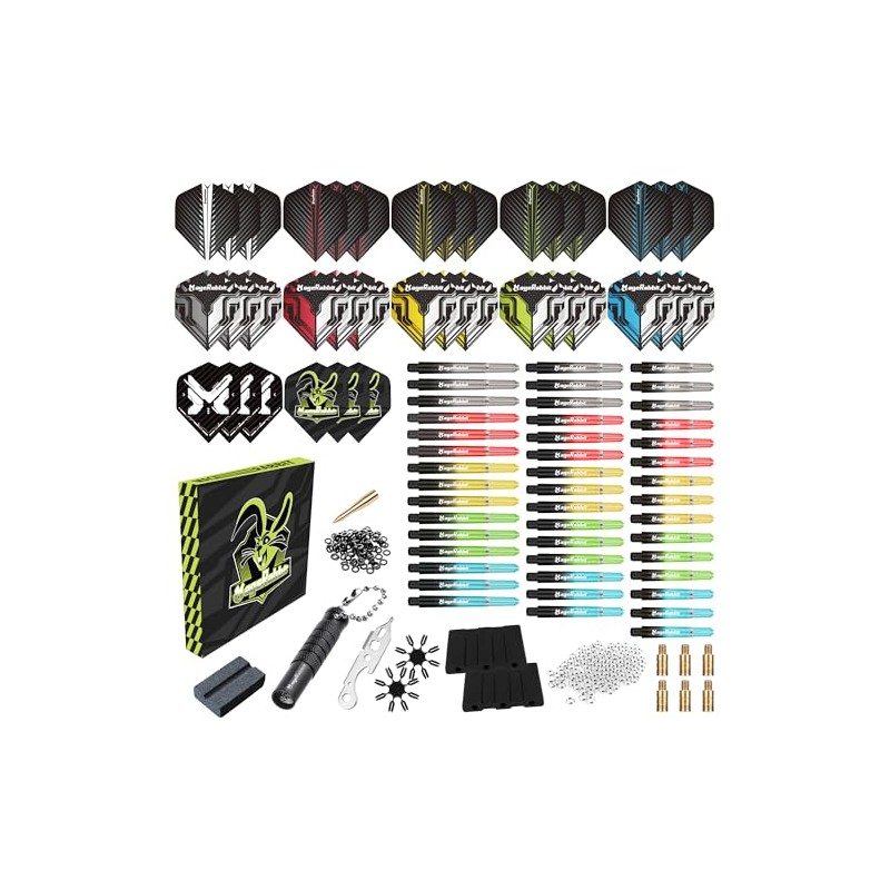 - Complete Dart Accessories Kit: This dart flight set includes 36 dart flights, 45 dart shafts, a sharpener, a remover, 50 metal rings and 16 dart flight protectors - a total of 11 different types of dart accessories.