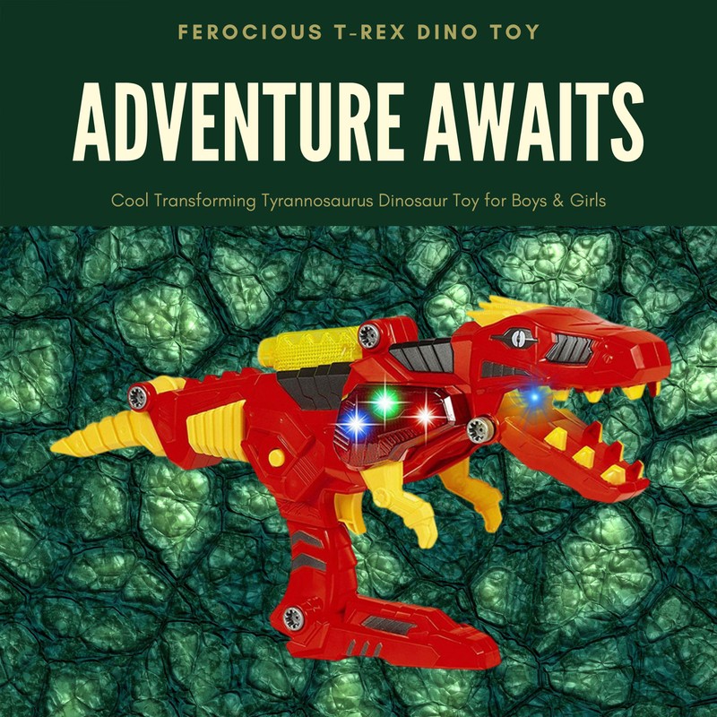 Ready for an out-of-this-world adventure? This epic 3-in-1 T-Rex space toy transforms from a futuristic blaster into a fearsome dinosaur warrior!