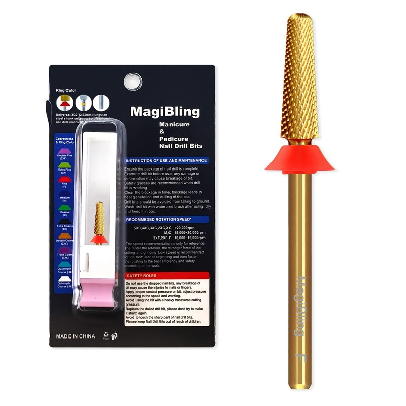 MagiBling Small Cone Tapered Nail Drill Bits for False Nail Apply, Trimming, Gel Removal, 3/32'' Tungsten Carbide Bits, Two-way Rotation, Manicure Pedicure Cuticle Gel Polishing Tools, Fine.