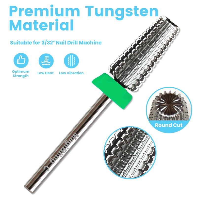 MagiBling Straight Cut 5 in 1 Nail Drill Bits, 3/32'' Professional Safety Tungsten Carbide Bits, Two-way Rotation, Manicure Pedicure Cuticle Hard Gel Removal Polishing, Coarse
