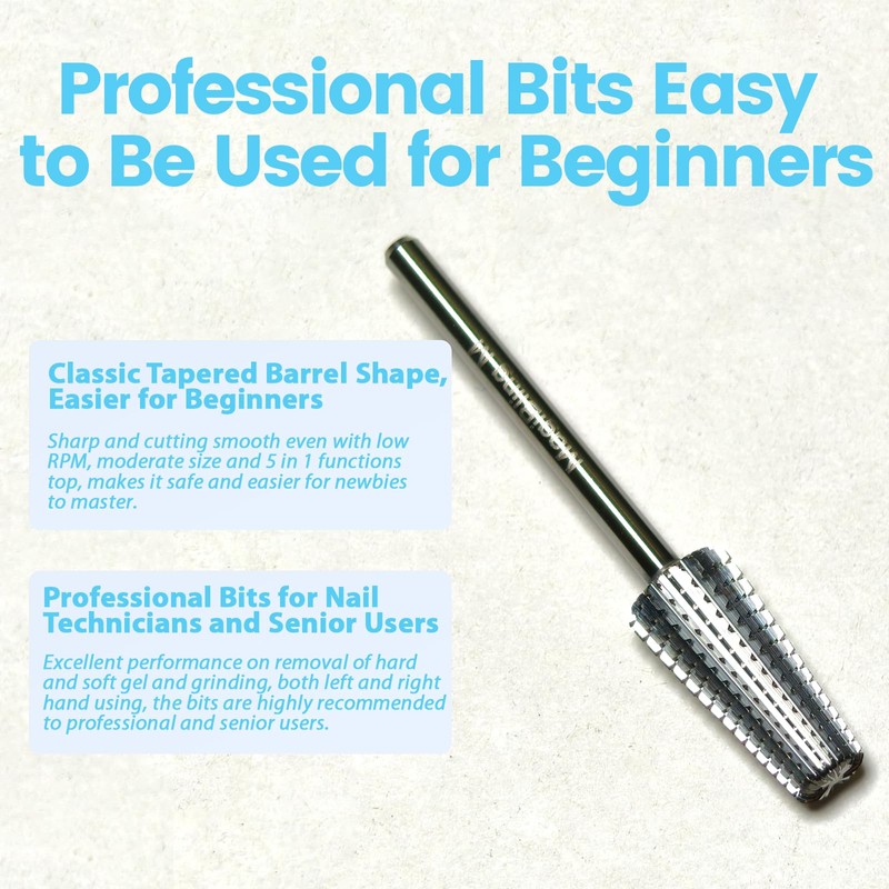 - Professional Bits for Nail technicians and Beginners : The bits with classic straight cut and safety top come with multi-functions, one bit to complete a variety of tasks such as removing gel, grinding, and trimming. Highly recommended for professional users and also newbies.