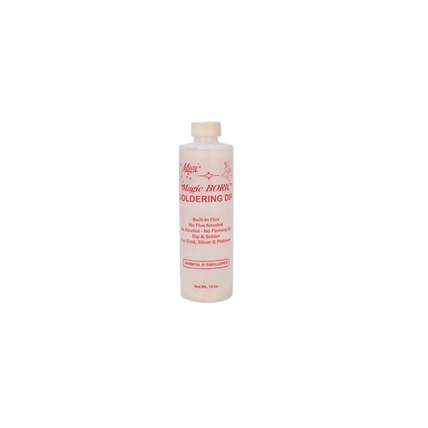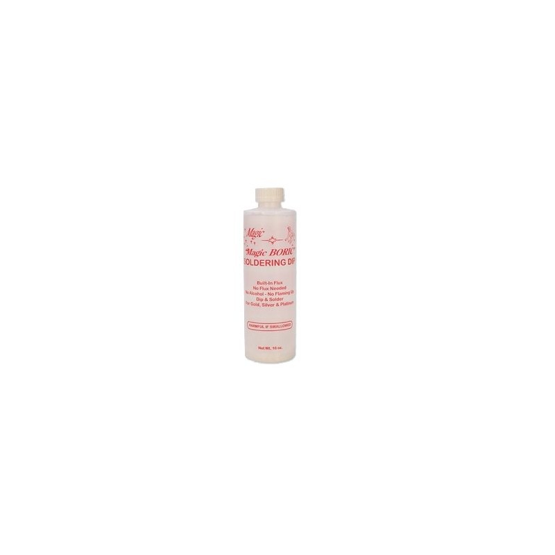 Requires only that you dip the piece into Magic Boric and solder ' the flux is built right in. No burn-off or waiting to solder. It prevents fire scale and will cut your soldering time by as much as 50%. Non-flammable and non-hazardous.