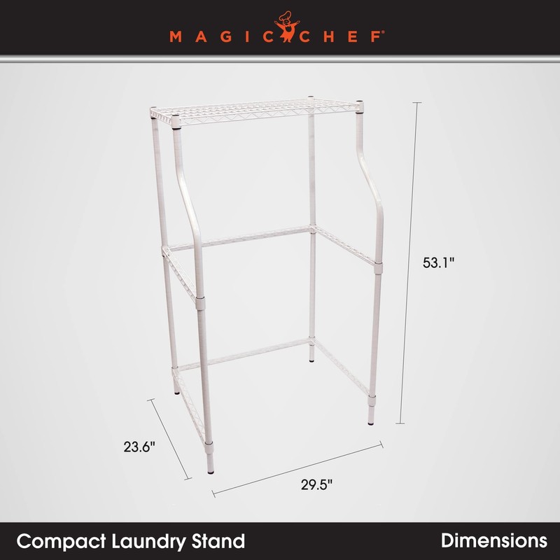 - SPACE-SAVING DESIGN: This small laundry stand is great for small apartments and downtown lofts. It is recommended for use with Magic Chef MCSDRY1S and MCSDRY15W compact dryers, and you can also use it as a laundry shelf or supply station