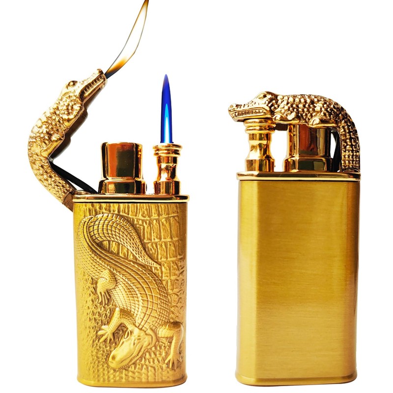 - đ„ăExquisite Crocodile DesignăErgonomic design provides comfort to your hand and protects your fingers from being burned. Soft flame straight flame, double fire design, one lighter, enjoy two ways of lighting,The frosted shell is comfortable to the touch. Prefect gift to your father or boyfriend.