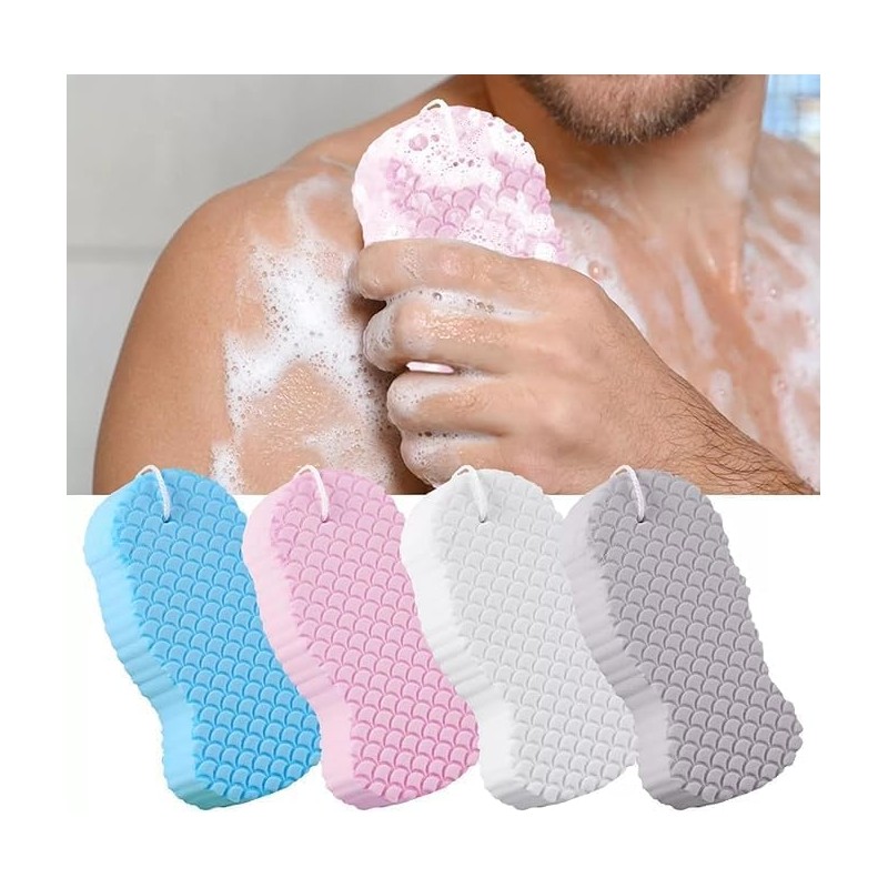 - Material: This exfoliating shower sponge is made of soft high-density sponge material, with concave and concave texture design, which deeply cleanses the surface of the skin. Has elasticity and can deform freely, improving cleaning efficiency and effectiveness.