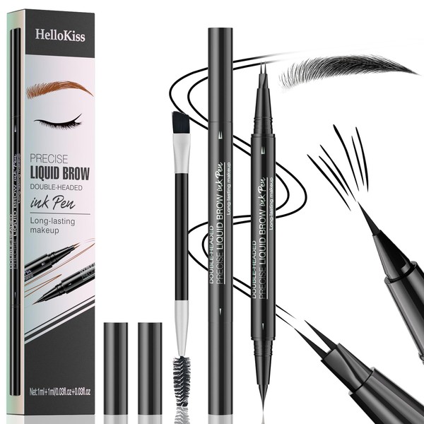 Magic Eyebrow Pencil, Waterproof, Microblading Eyebrow Pencil with 2 Micro Fork Tips and Precise Brush Tip, Smudge-proof Dual-Ended Eyebrow Pencil Creates Natural Eyebrows (Black)