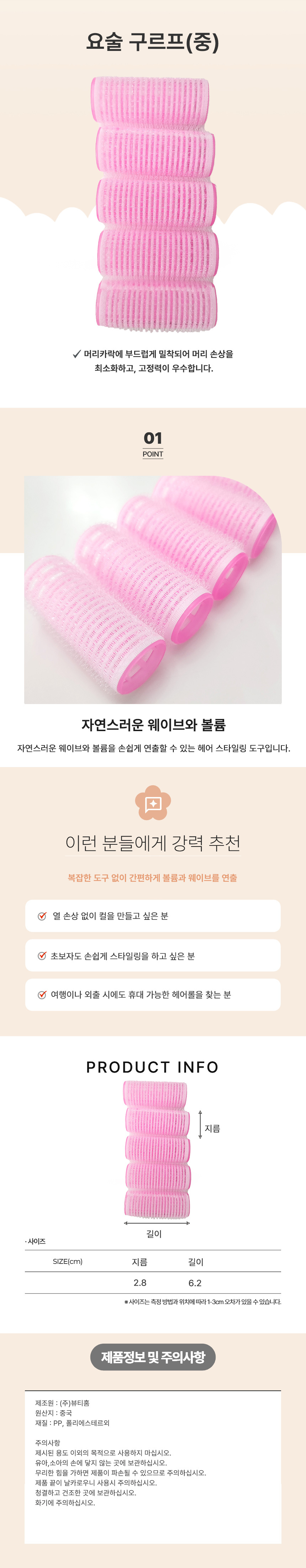 Magic Hair Rollers (Medium) Pink 0591 / Hair Rollers for Styling Bangs Roller 5ea