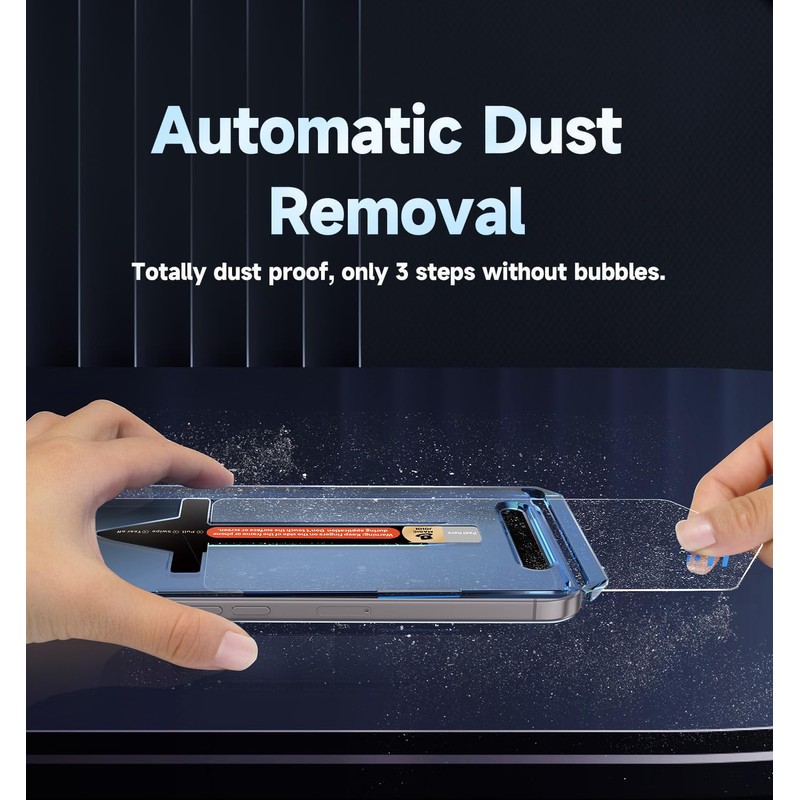 - [Automatic Dust Removal Tech] Just cover and pull, the screen protector automatically aligns and takes away the dust. No more worrying about bubbles and dust. Please watch our Dust-Elimination Installation video tutorial before installing.