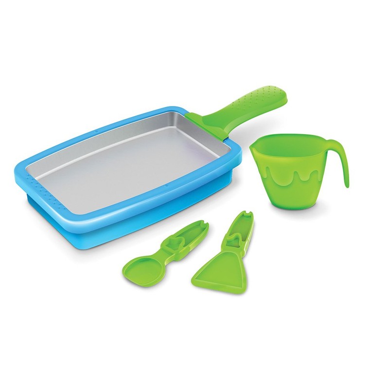 - Contents: freezer tray with handle, spatula, spoon and filling cup