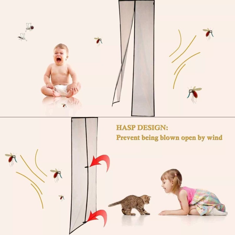 Magic Mesh Magnetic Mosquito Screen Door Net Curtain with Magnets Reinforced Polyester Mesh Curtain Back Door Mesh with Full Frame Hook & Loop We’re committed to making your life more comfortable and easier. Our upgraded magnetic screen door - the self-sealing magnetic closure allows for hands free walk through entry. The magnetic screen door letting fresh air in, keeping out bugs and insects. The screen door’s middle seam is lined with powerful magnets that allow it to close seamlessly behind you Our durable, heavy-duty mesh screen with reinforced edges can withstand lots of impact. Suitable for normally size door: entry door, sliding door, French door, kitchen doors and main entrance doors. With wide range of application, such as home kitchen, bedroom, offices, balcony, stores, installs without any tools Screen keeps your home pets free and your family safe from harmful insect. Allow your children the freedom of running in and out without having to consciously close the door