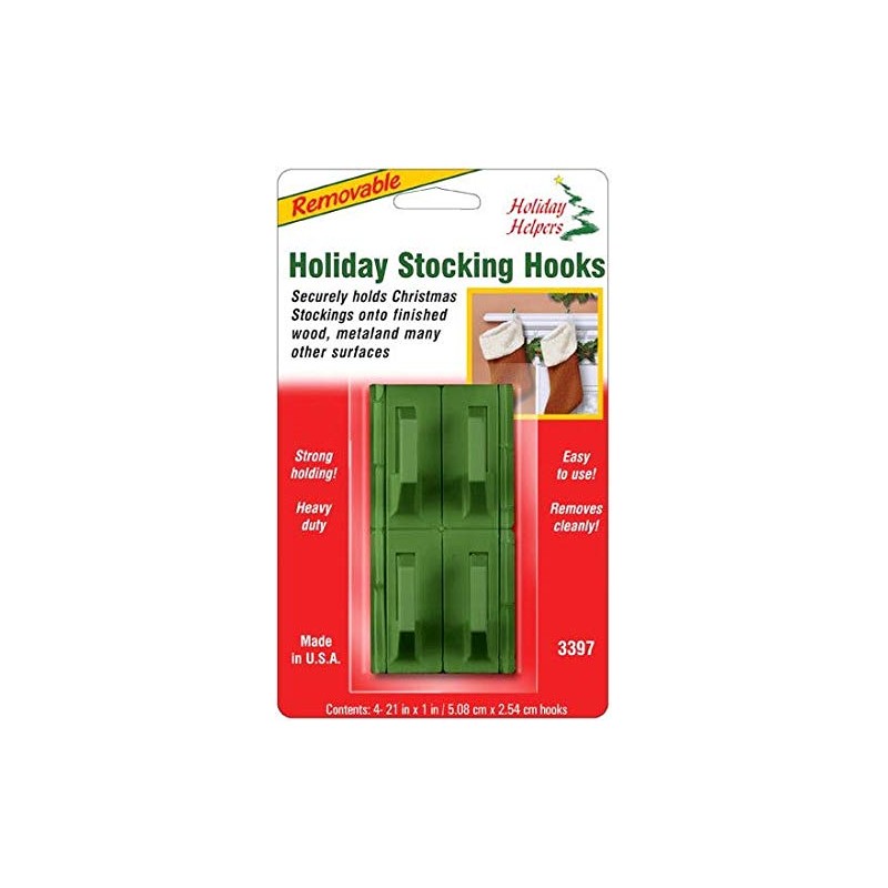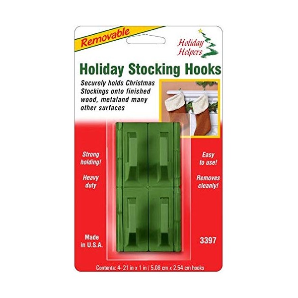 Magic Mounts Holiday Helpers : Green : 4 Pack : Removable Stocking Hooks : 3397
