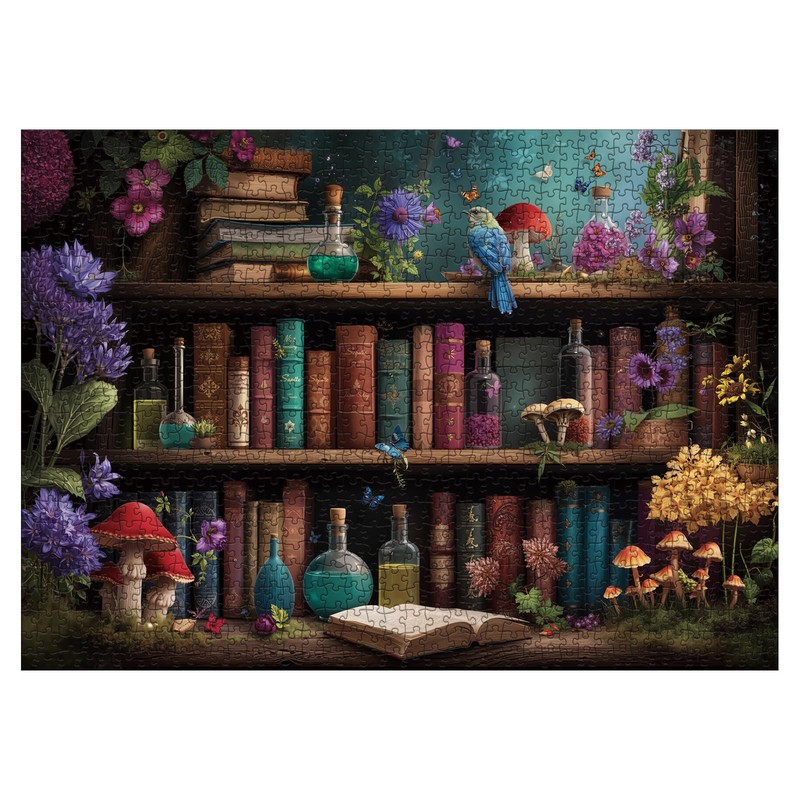 Magic Mushroom Bookshelf Puzzles for Adults 1000 Pieces Nature Magic Bird Book Library Flower Jigsaw Puzzles Challenging Hard Difficult Puzzle