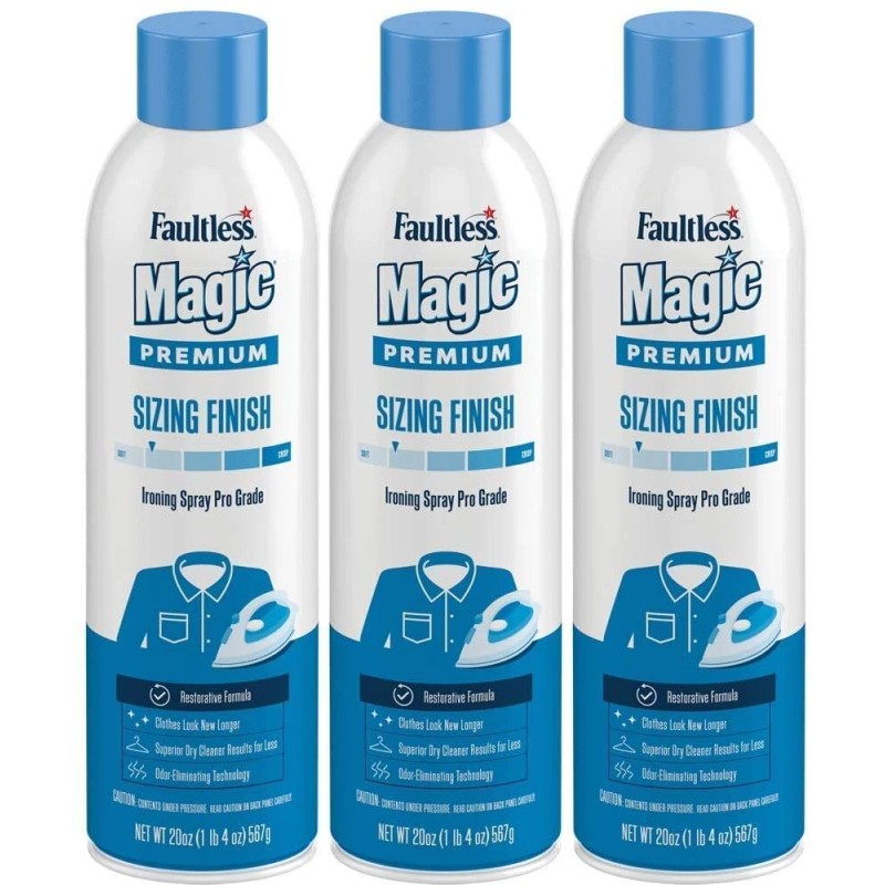 Magic Sizing restores original body to all washable fabrics. Use it to eliminate wrinkles on synthetics, blends, cotton and knits. Ideal for shirts, pants, wrinkle free fabrics and casual clothes.