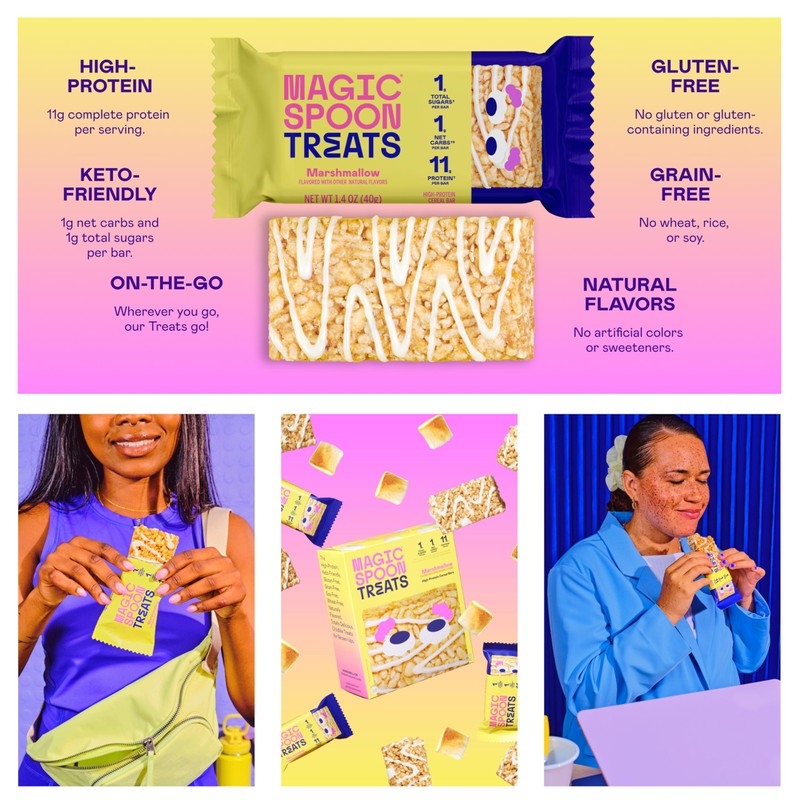 MAGIC SPOON Treats I High Protein I Low Carb I Keto Friendly I 1g of Sugar I Gluten Free Crispy Treat I Protein Bar I Cereal Bar & On-The-Go Healthy Snack (Marshmallow, 8 Bars)