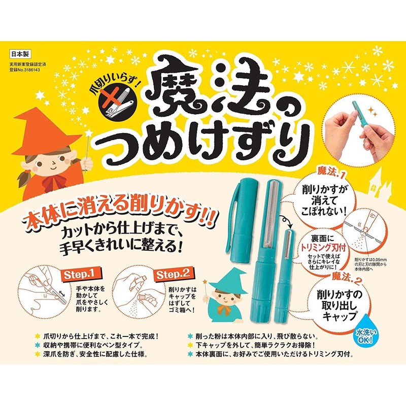 • From nail clippers to finishing with this single piece. Pen shaped nail sharpener for convenient storage and portability. The shaved powder will not penetrate inside the main unit