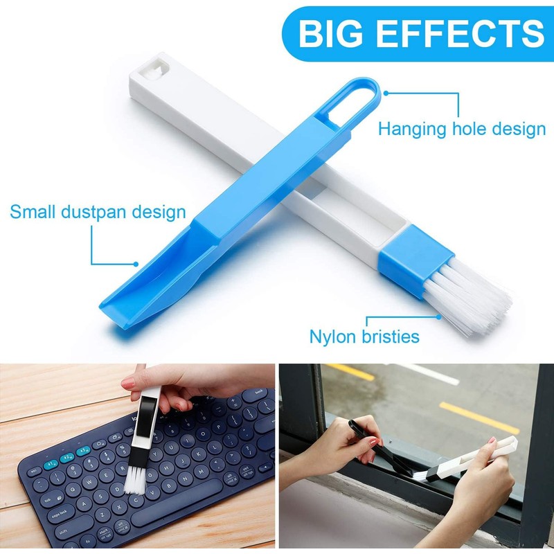 - Magic Window Cleaning Brush: Removable Window Groove Cleaning Brushes adopts the removable buckle design, which is easy to clean, and the brush head is easy to replace, 2 in 1 small dustpan and brush clamped together for compact storage and use. These cleaning brushes get into the gaps of many hard to reach corners and small gaps/air vents, etc.