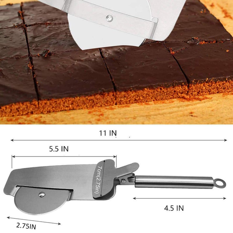 - MULTIFUNCTIONAL The pizza cutter has a unique 4 in 1 design, is perfect for cutting pizza, cakes, bread dough, homemade pasta, quesadillas, herbs and desserts like giant cookies. It is the perfect tool for party, birthday, Christmas or family dinner.
