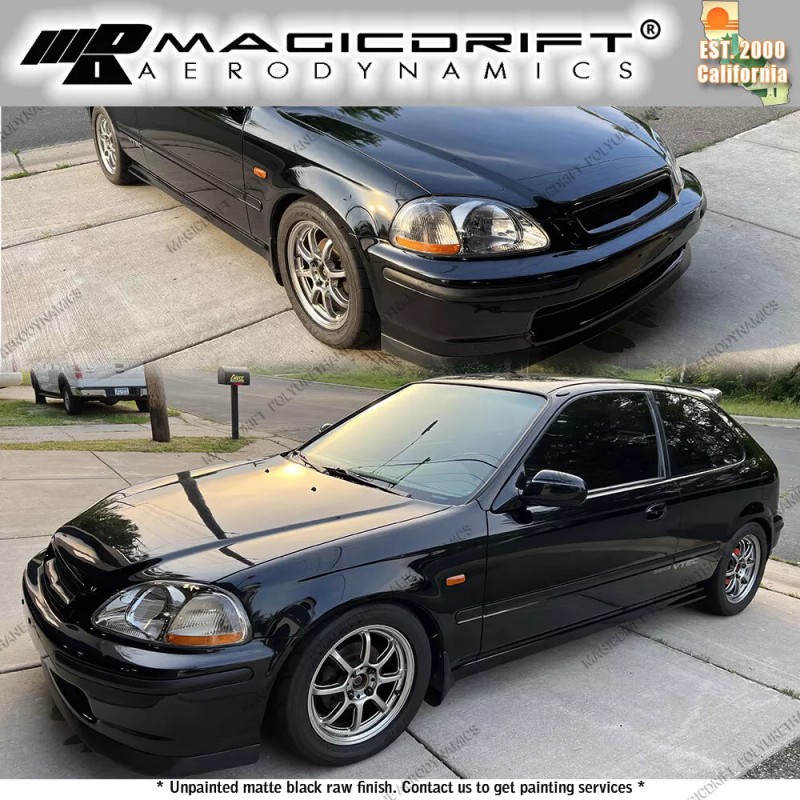 MagicDrift For 96-98 Honda Civic EK Add-On SIR Style Front Bumper Lip Spoiler Splitter PU