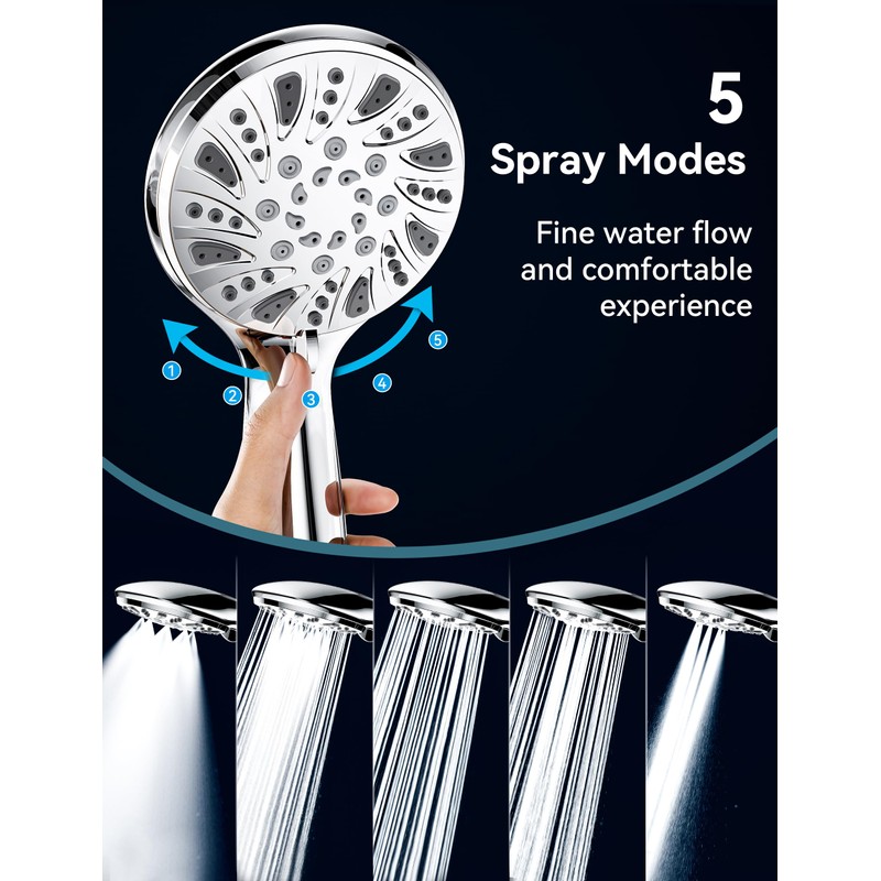 - 【 5-Mode Showerhead 】- This high pressure shower head has 5 different spray modes to meet your different showering needs, such as daily showering, pet bathing, and bathroom cleaning.
