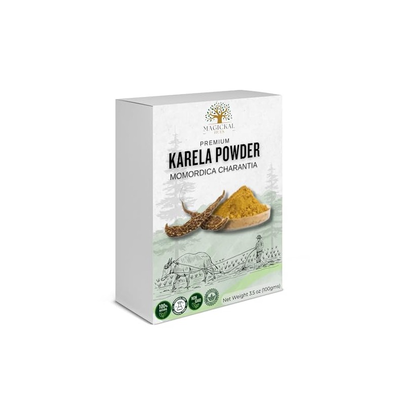 Magickal Hues Karela Powder 3.5 oz Bitter Melon Powder (Bitter Gourd) for Smoothies, Tea, Juices, and DIY Recipes Finely Ground Bittermelon for Culinary and Wellness Use