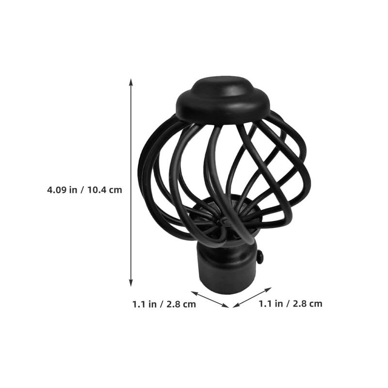 MAGICLULU 2pcs Round Curtain Rod Finials Drapery Pole Ball End Twisted Cage Replacement Decorative End Head Caps for Home Office Black