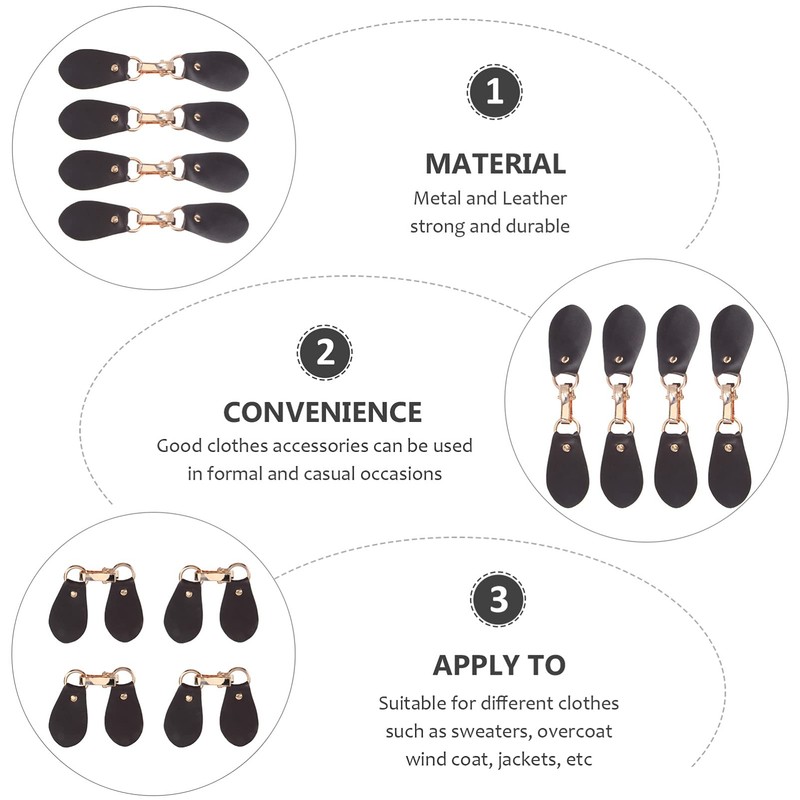 - You will receive 4 pairs of leather button clips measuring 15.7 x 3.1 cm, enough for your needs