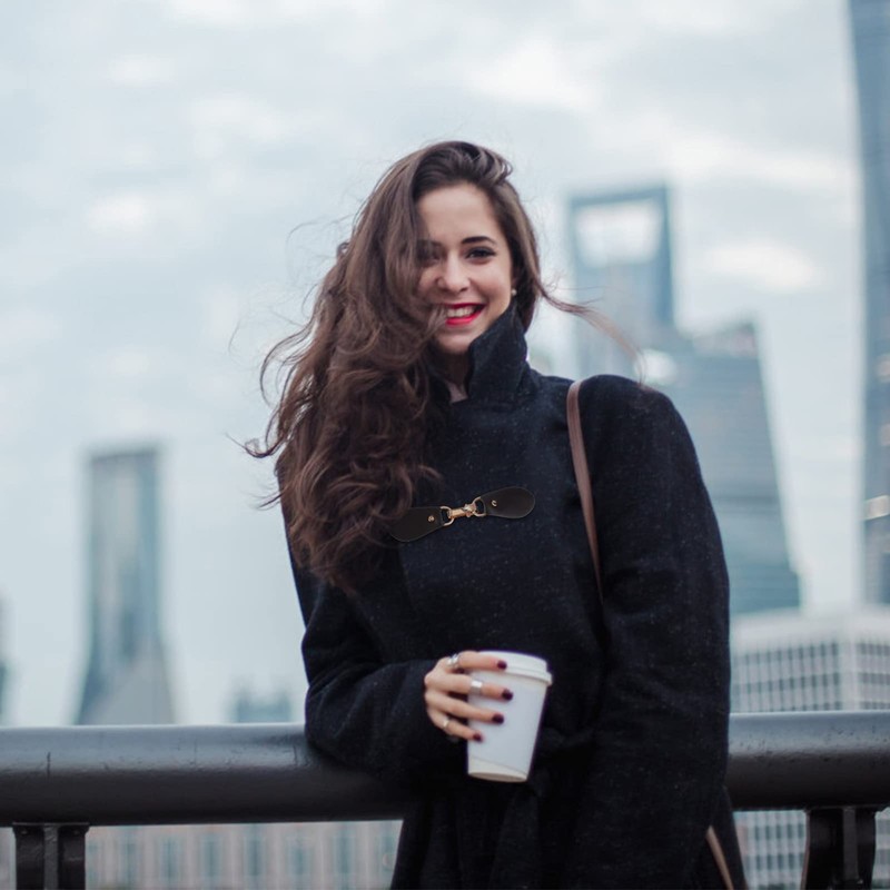 MAGICLULU 4pcs Leather Metal Coat Buttons Leather Buckle Clip Toggle Closure Buckle Leather Snap Toggle for Coat Jacket DIY Craft (Black)