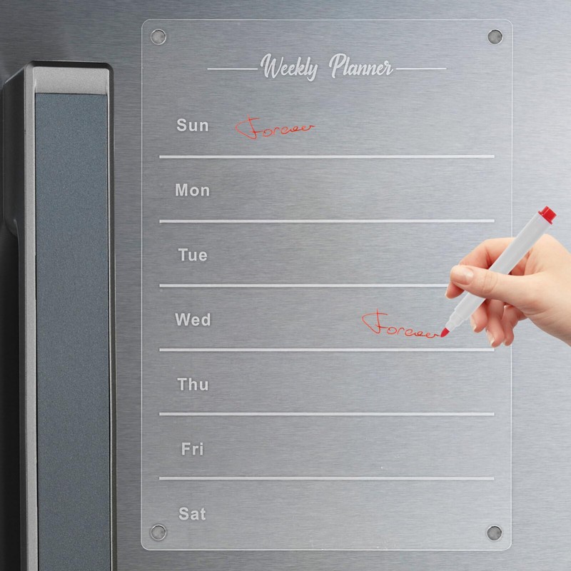 - With magnetic design, the daily fridge board can be magnetically attached to refrigerator.