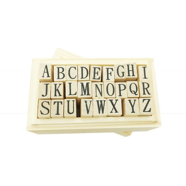 - A set of 26 pieces alphabet stamps, made of wood, environmental and healthy to play with