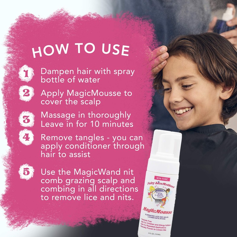 MagicMousse Lice Treatment Mousse for Head Lice Removal, No Sulfate and Pesticides, 4 fl oz - Fairy LiceMothers