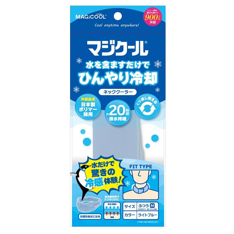 MAGICOOL Cooling Neck Cooler, Light Blue M (Normal), Made with Japanese Polymer, Cool Cooling 20 Hours Just by Including Water