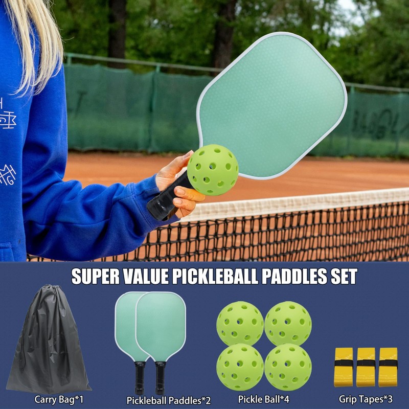 - 【Premium Pickleball Paddles】Our pickleball paddles set is designed with unique fiberglass and polypropylene honeycomb core technology. This makes them lightweight, strong, and durable. Providing excellent bounce and improving pitching performance.
