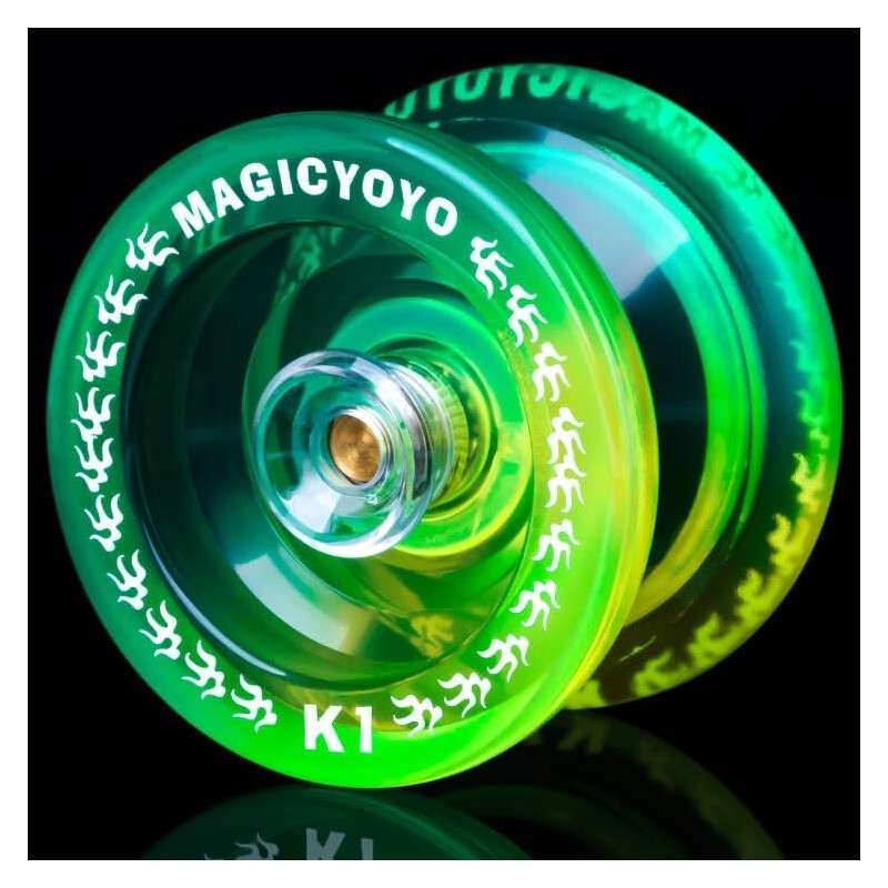 - DUAL PURPOSE YOYO: Crystal Yoyo for kids K1 comes with 2 bearings, responsive (ideal for beginners) and unresponsive (for some more advanced tricks). The kids yoyo K1 is set up as a responsive yoyo, which means that when it is spinning at the end of the string, a gentle pull will bring it back up. The yoyo comes with spare ball bearings which you can swap in to make the yo-yo unresponsive. You will need to learn a trick called a "bind" to bring the yoyo back up