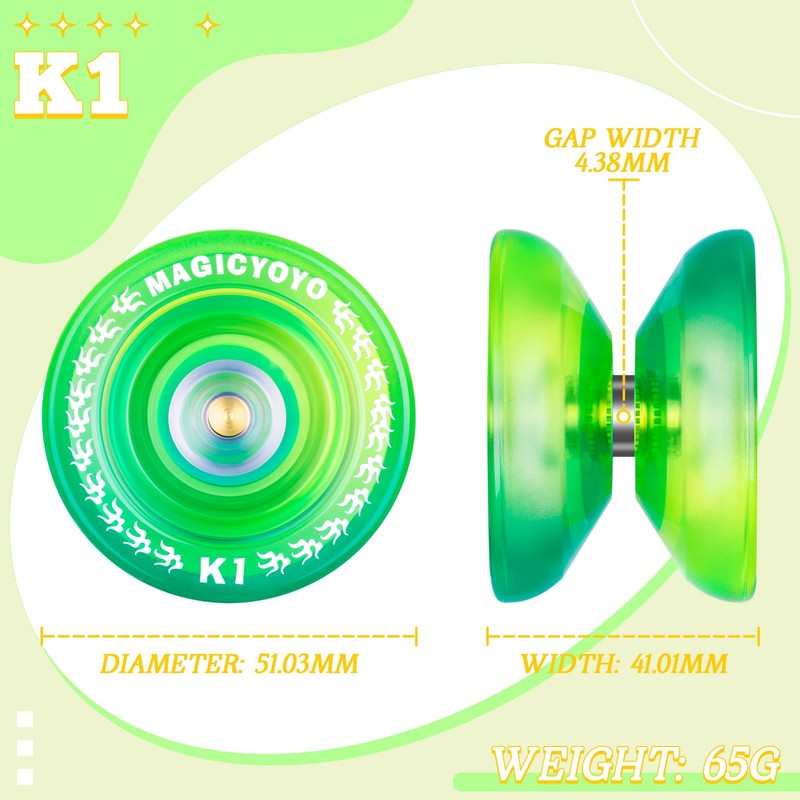 - Premium Plastic ABS Material: Yoyo K1 PLUS is made of durable plastic ABS material and is equipped with regular flating bearing for responsive tricks, also suitable for learning basic yoyo tricks style (1A, 3A, 5A)