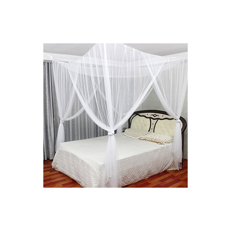 MAGILONA Home 4 Corner Hanging Bed Canopy Cover Net Bedding or Outdoors Netting Fit Twin, Full, Queen, King Bed Protection Bedroom Decorative(White)