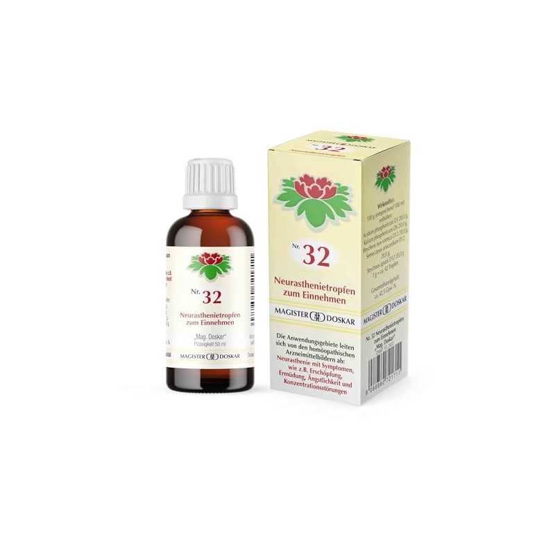 MAGISTER DOSKAR Tropfen Nr. 32 – Homöopathische Neurastenietropfen, 50 ml – Unterstützt bei Erschöpfung – Lindert nervöse Unruhe – Stärkt das Nervensystem – Natürliche Pflanzenextrakte