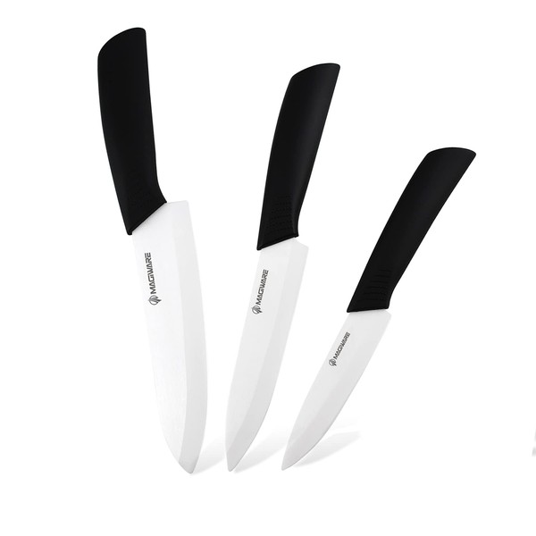 Magiware Classic 3PCS Ceramic Knife Set with Cover, Super Sharp Never Rust Healthy (6" Ceramic Chef Knife, 5" Solution Knife,4 "Classic Paring Knife)