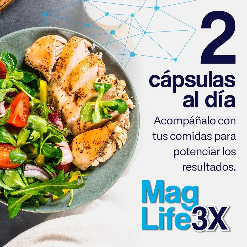 - Modo de Empleo: Tomar dos cápsulas al día, preferentemente con alimentos. Complementa tu estilo de vida saludable con Mag Life3X