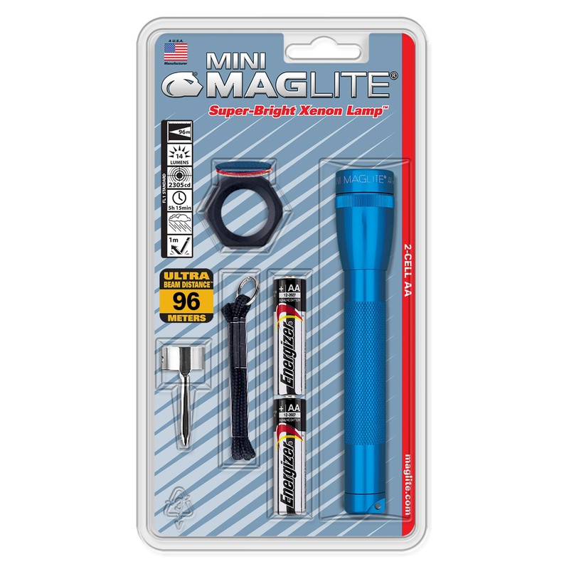 Maglite Mini Incandescent 2-Cell AA Flashlight Combo, Blue