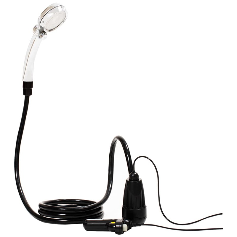 - 小型充電式バッテリーでどこでもシャワー 専用シガーチャージャーで、車からの給電も可能となりました。