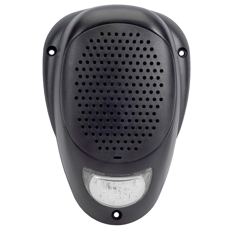 - Black speaker (sold as a pair) with white LED color that glows while on .