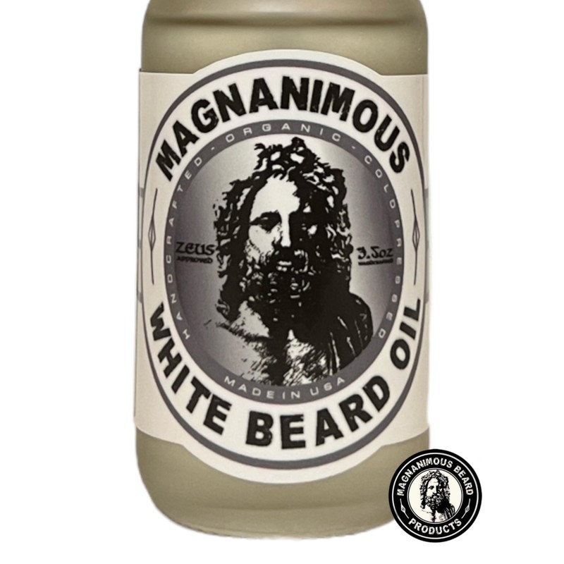 MAGNANIMOUS WHITE BEARD OIL FORMULA (3.5 OZ) "ALEXANDER" SCENT (MAHOGANY, COGNAC, BLOOD ORANGE, RED PEPPER, SAGE, BOURBON...) - THE BEST BEARD OIL FOR WHITE BEARDS ON THE PLANET, SANTA APPROVED!