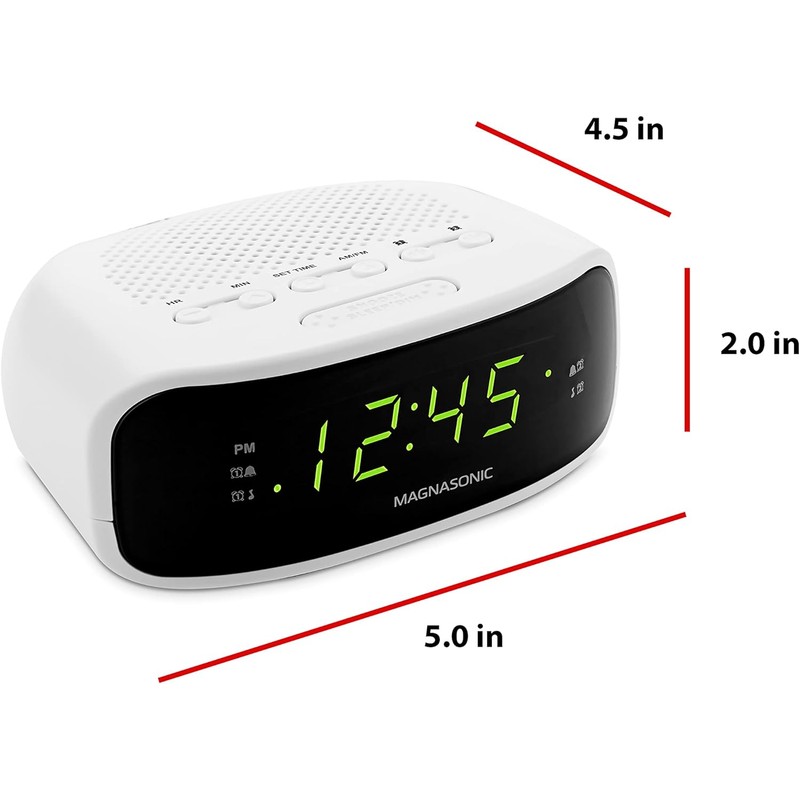 Magnasonic Digital AM/FM Clock Radio with Battery Backup, Dual Alarm, Sleep & Snooze Functions, Display Dimming Option,White (EAAC201)