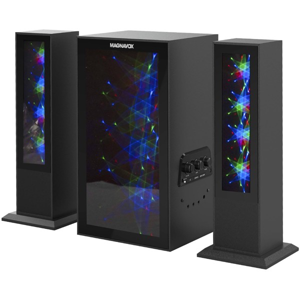 Magnavox MHT990 2.1 Home Entertainment System with Bluetooth Wireless Technology and Color Changing Lights in Black | AUX Port | Subwoofer with 2 Speakers | Pulsing Lights |
